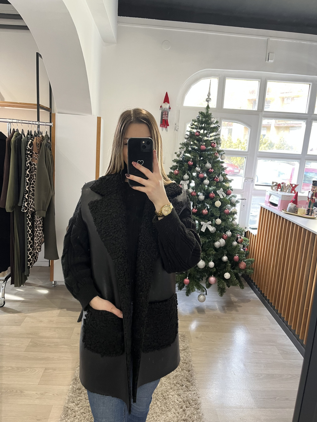 Ez a fekete mellény a puha, prémhatású szőr és a letisztult műbőr merész kombinációja. Modern, rétegezhető darab, amely bármely szettet azonnal karakteressé és vagánnyá tesz. Könnyű, mégis látványos – tökéletes választás a statement megjelenéshez.