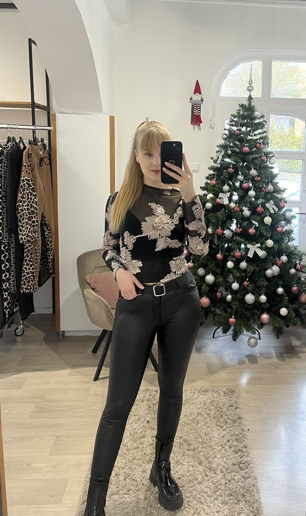Belül plüss béléssel ellátott push-up hatású nadrág.