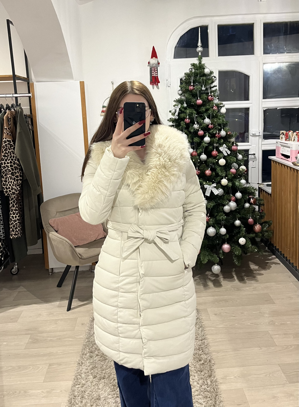 Bőrhatású, derékban karcsúsított, a szőrme levehető. Kis méretezésű.